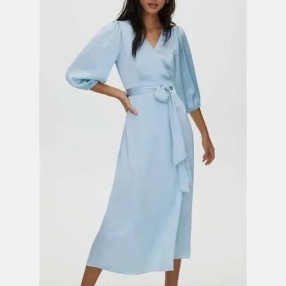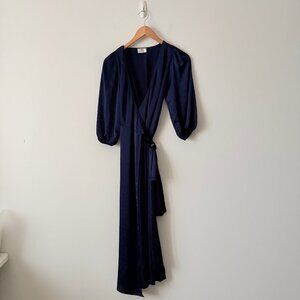 Aritzia Little Moon NAVY Vesper Satin Wrap-Front Maxi Dress Navy Blue Size XXS