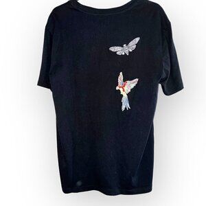 **BLACK COLOR** classic fit t-shirt with colorful embroidered patches with animals on both front and back. Heavier weight cotton t-shirt and relaxed fit.