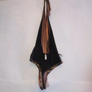 Aritzia Little Moon metallic Goldish Luna Halter Bodysuit Large