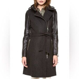 Aritzia x Mackage Dale Wool Trench Coat Jacket Asymmetrical Leather Sleeves