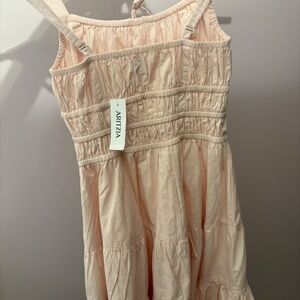 The photo from Aritzia isn’t same as this shy pink color. Shy pink color is more warm light pink i would have kept it if it wasn’t long (i prefer a short skirt)