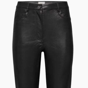 The one, the only, the Melina. These are high-rise straight-leg pants with five-pocket styling and a universally flattering fit. They’re made with Aritiza's innovative Vegan Leather that looks and feels like the real thing. They have an authentic drape and a soft sheen that feels right from day one.