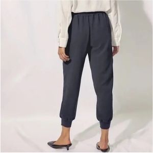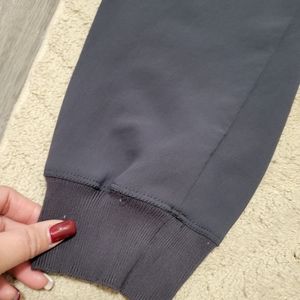 Stylish gray jogger pants. Elastic waistband with drawstring. Comfortable and chic.