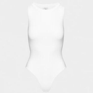 ✨ A sleeveless crewneck bodysuit in Aritzia’s signature Contour fabric — known for its smoothing, second-skin feel. Features a thong bottom with snap closure and double-layer construction for a supportive, flattering fit.