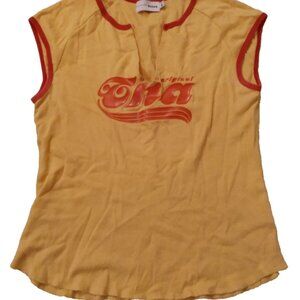 Aritzia Original TNA Shirt M/L Sleeveless Ringer Tee Yellow Red Logo