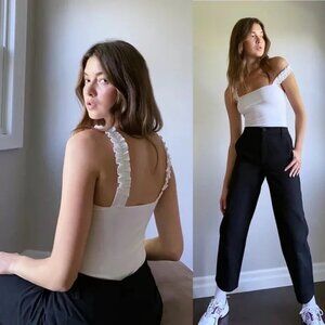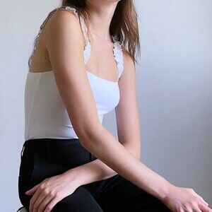 Aritzia Ruffle Strap Knit Firecracker Bodysuit Tank Top Blouse Elevated Basic Sleeveless Shirt