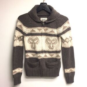 Aritzia Sea To Sky Cowichan Wool Chunky Knit Zip Front Cardigan Sweater Brown S