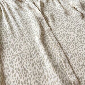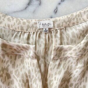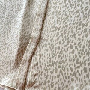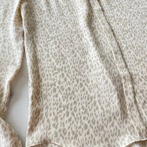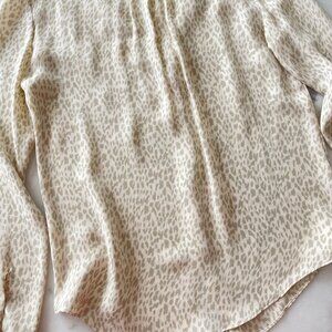 Beautiful and understated cream and taupe leopard print Aritzia silk blouse. Would work beautifully with denim, trousers, or skirts, it's such a versatile piece. In great used condition, there is a small snag on the back neck, as shown in photos. Not noticeable while wearing.
