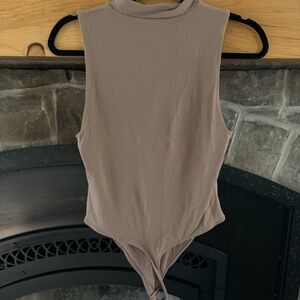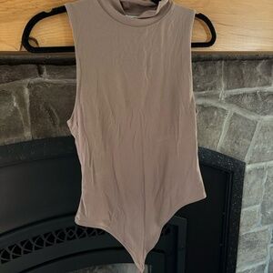 Aritzia Sleeveless Light Chocolate Brown Turtleneck Bodysuit