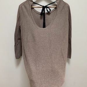 Cute black tie up at the back, looks great with jeans. I see it being paired with a cute leather jacket or a longer Shacket style fall coat.