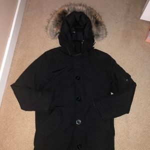 Fits more like a size S. Keeps you warm in up to -40 degrees Celsius weather according to Aritzia website. One of the warmest parkas they have. Excellent used condition.