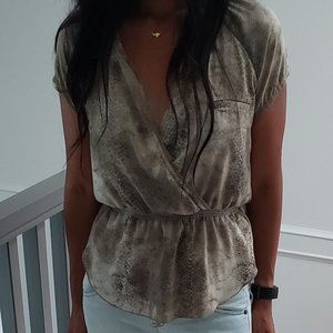 Cross over top with small pendulum perfect for jeans but also can be dressed up with pants or a skirt. Barely worn. perfect condition. 100% Polyester with silk feel. Flowy and airy. Perfect for those hot summer days.