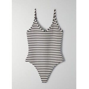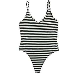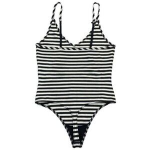 Aritzia Sunday Best Annie Striped Thong Bodysuit Small Black White