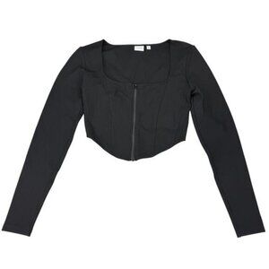 Aritzia Sunday Best Black Marerick Long Sleeve Corset Cropped Zip Front Small