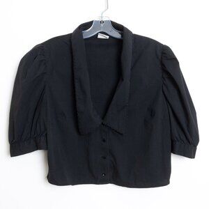 Aritzia Sunday Best Blouse Button Up Shirt Black Poplin New Solitaire Victorian