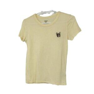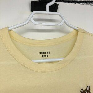 Aritzia Sunday Best Candy crewneck pastel yellow t-shirt Bulldog patch