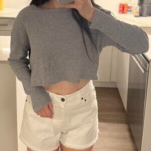 Aritzia Sunday Best Cropped Grey Waffle Knit Longsleeve