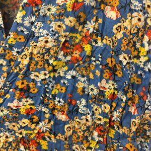 A floral kimono from Sunday Best. Note there is no closure on the front of this garment. Short Sleeves. Hem hits mid-thigh on me (I am 5 ft 7). Great for summer, or as a beach cover up! 100% rayon.