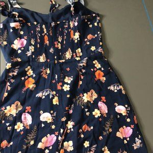 This aritzia dress has only been worn a couple of times and is in amazing condition. It is navy blue with a floral pink pattern, perfect for going out and for summer.