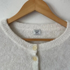 Aritzia Sunday Best Fuzzy Soft Cropped Effie Cardigan Short Sleeve White Small