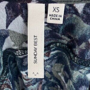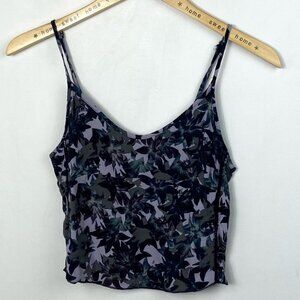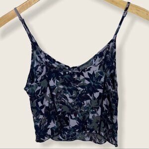 Aritzia Sunday Best Golding Camisole Top in Women's Size XS. Cropped tank with adjustable spaghetti straps. Dark leaf print. Note the model photos are in different pattern to show fit. 100% viscose. Style #53551. Very good pre-loved condition. No visible flaws.