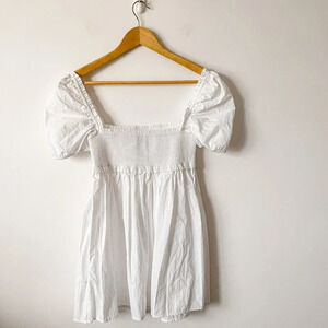 Aritzia Sunday Best Hadley Puff Sleeve Babydoll Poplin Mini Dress White Sz Small