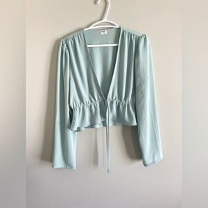 Aritzia Sunday Best Kimberley Front Tie Blouse in Baby Blue Size Medium