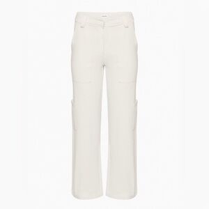 These are mid-rise carpenter pants with back and side pockets, topstitch detailing and a hammer loop. They're cut from cozy brushed twill made from 100% organic cotton.