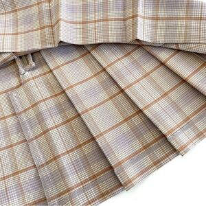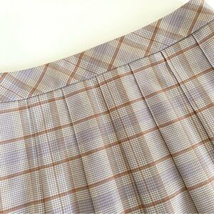 This is a high-waisted pleated micro skirt with an invisible zip at the back. It’s cut from soft bi-stretch twill made with recycled materials. This version comes in a yarn-dyed plaid pattern that's been woven in, as opposed to printed on, for a more dimensional look.