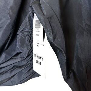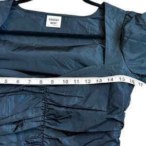Aritzia Sunday Best Petal Blouse Black Make your jeans feel special This is a cropped, puff-sleeve blouse with a sweetheart neckline and a ruched bodice. It's made from a structured Italian taffeta fabric. Features Invisible side zipper Materials & Care Origin: Fabric from Italy Content: 100% polyester Machine wash Model is 5'11"/181 wearing a size 4 On average, customers say it fits slightly smaller Size 6 Measurements in photos New with tags