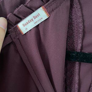 Aritzia Sunday Best Raleigh Mini Dress Long Sleeve Burgundy Ruffle Lined