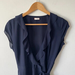 Aritzia Sunday Best Ruffle Savoy Wrap Dress Navy Blue Size 0