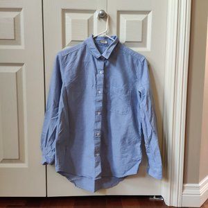 Description: This classic button down has long sleeves, a relaxed silhouette and a high low hem. It is made of 100% cotton chambray fabric that is soft and slightly structured.