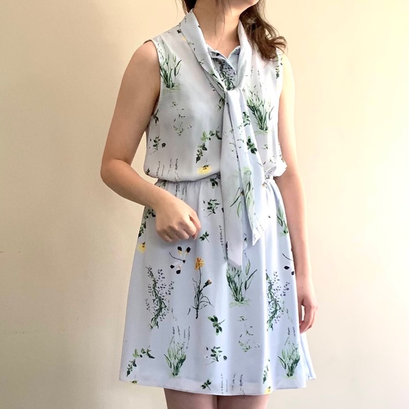 Aritzia Sunday Best Sleeveless Pale Blue Flower Dress.
