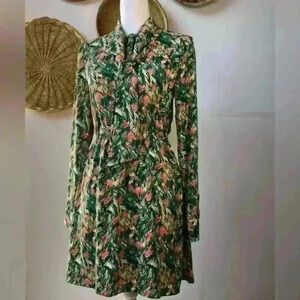 Aritzia Sunday Best Veronica Dress Green Yellow Long Sleeve Neck Tie Size M