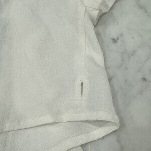 This short-sleeve blouse by Aritzia's Sunday Best brand can be worn three ways: wrapped around the body, tied in front or layered. It's made with a slightly sheer lightweight viscose fabric in white.
