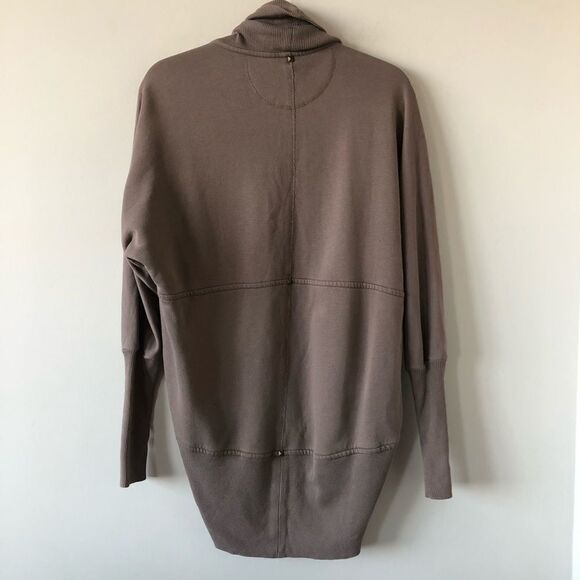 This is a cocoon sweater with ribbed sleeves and pyramid stud details. It's made with a brushed fabric that's super soft.