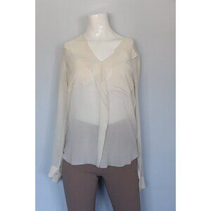 Aritzia T. Babaton Womens Size XXS Ivory Blouse Sheer Silk Shirt Long Sleeve Top
