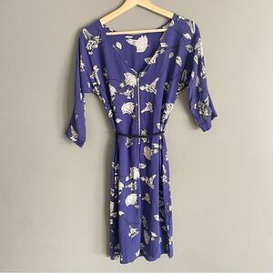 Aritzia T.Babaton Blue Floral Silk Crepe Business Casual Work Dress Size XS