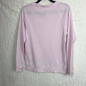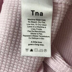 TNA Andrews Waffle long Sleeve baby pink top. This is a crew neck long sleeve with raglan sleeves. It is waffle knit with a cozy cotton blend. This top is perfect for stay at home comfort or going out casual, or a great top for a work out.