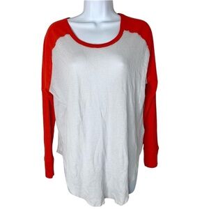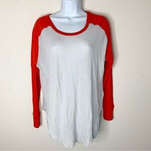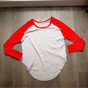 Aritzia TNA Baseball Henley T-shirt Top Waffle knit 3/4 length sleeve Red Size S