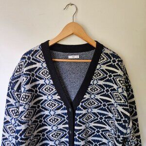 Aritzia TNA 'Jennings' Merino Wool Cardigan M Oversize Argile Colorwork Navy