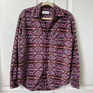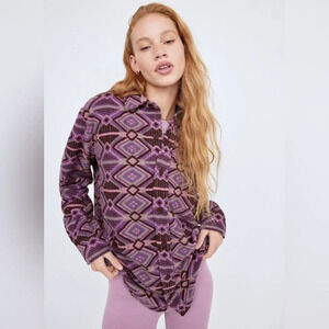 Aritzia TNA Purple Southwestern Polar Button Down Fleece Shirt XS