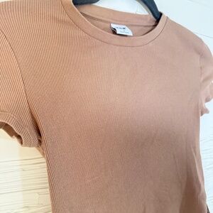 Aritzia | TNA Ribbed Baby Tee | Size S | Camel (Garment Dyed)