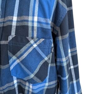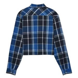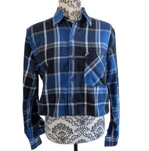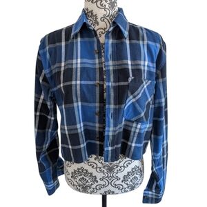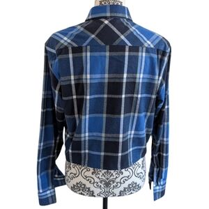 Aritzia TNA Shirt Flannel Plaid Women XS 90s Grunge Dark Academia Black Blue