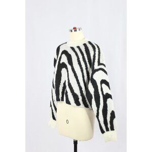 Aritzia TNA Utica Black White Zebra Striped Mohair Cropped Sweater, Size S