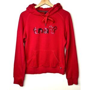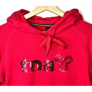 Aritzia TNA Hoodie Sweatshirt Women's Size Medium Pink Sequin Logo Front Pouch Pocket
