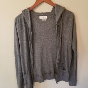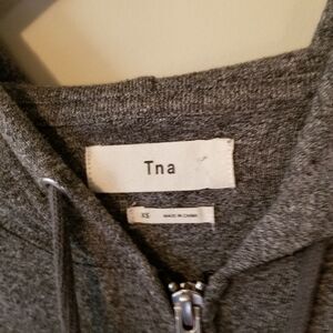 Women's TNA XS Gray Heathers Zipper Casual Hoodie. Hood with Drawstrings, 2 front pockets. In great Pre-owned condition. Care tags have been cut.