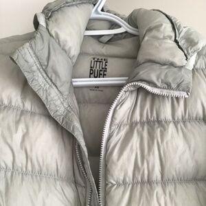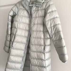 Keep your child warm and stylish with this silver puffer jacket. Perfect for chilly days.