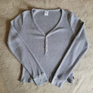 Aritzia TNA waffle knit Henley long sleeve shirt size large